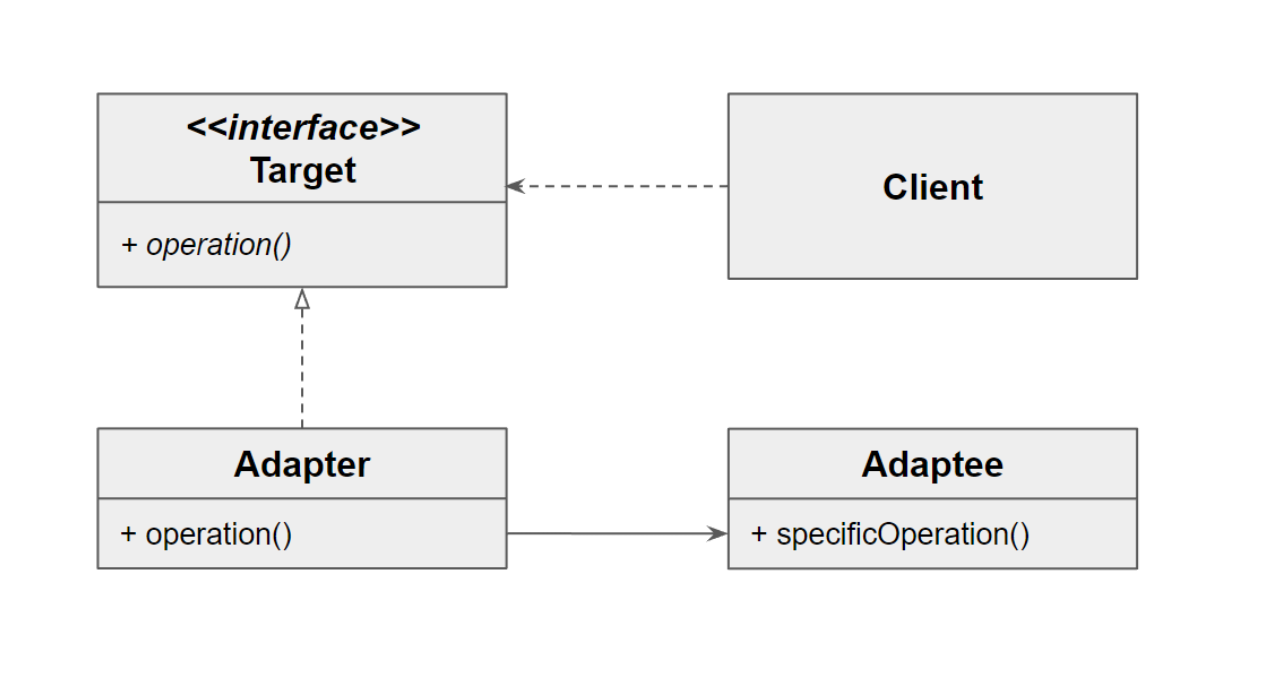 - 현실에 어댑터처럼, 기존 코드(Adaptee)의 값을 Adapter의 operation 메서드를 통해서 수정한다. 그리고 이 값은 Client가 사용할 수 있는 Interface(Target) 형태이기에 Client가 바로 사용할 수 있다.