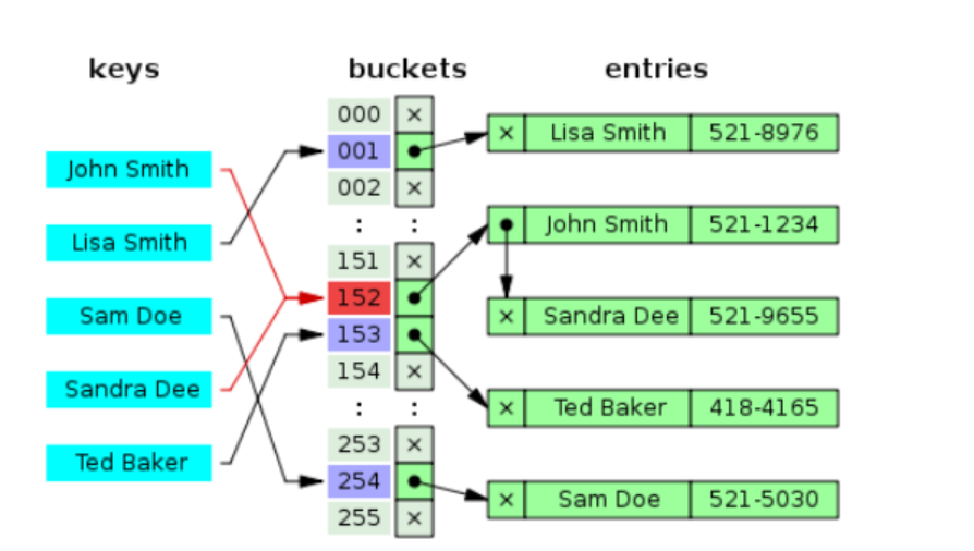 - 해시 함수를 사용하여 색인(index)을 버킷(bucket)이나 슬롯(slot)의 배열로 계산한다.