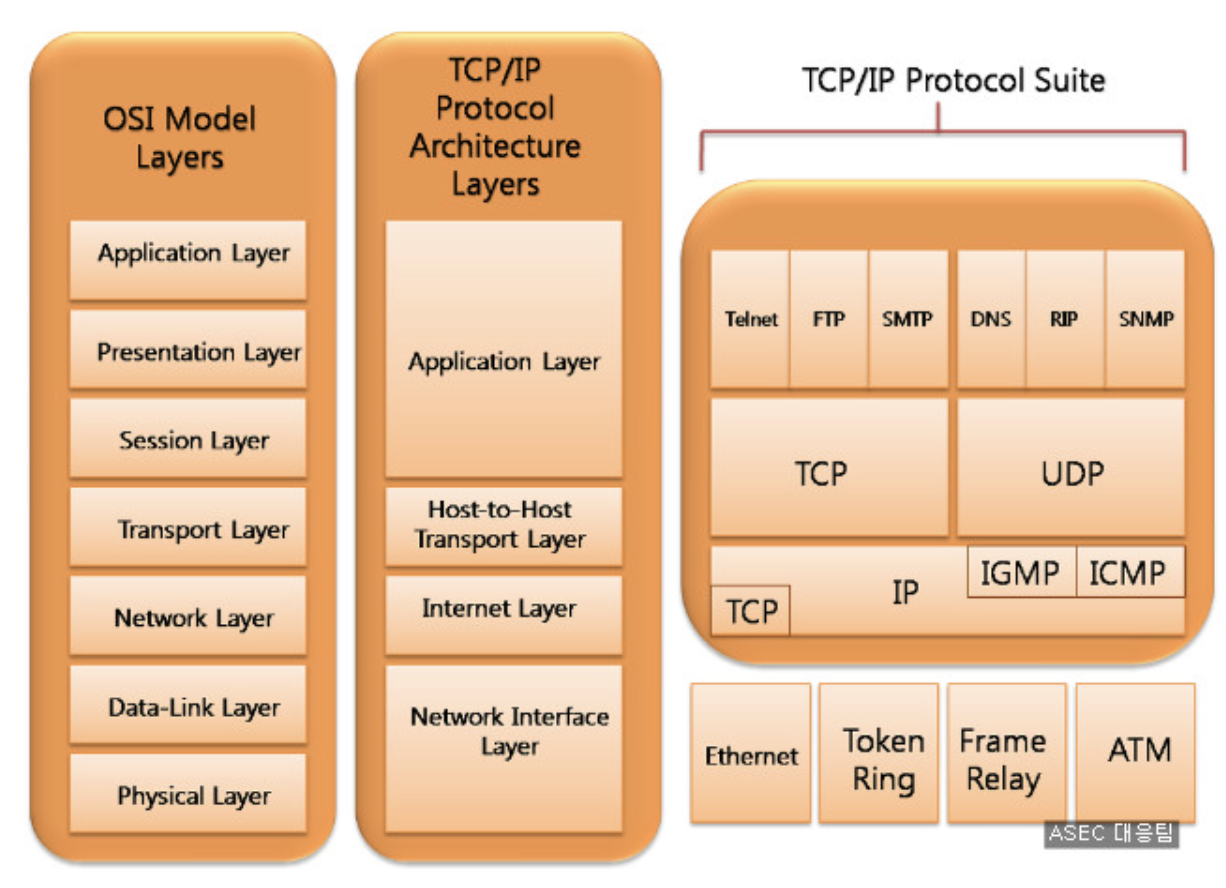 - 대표적으로 OSI 7계층과 TCP/IP 4계층이 있다.