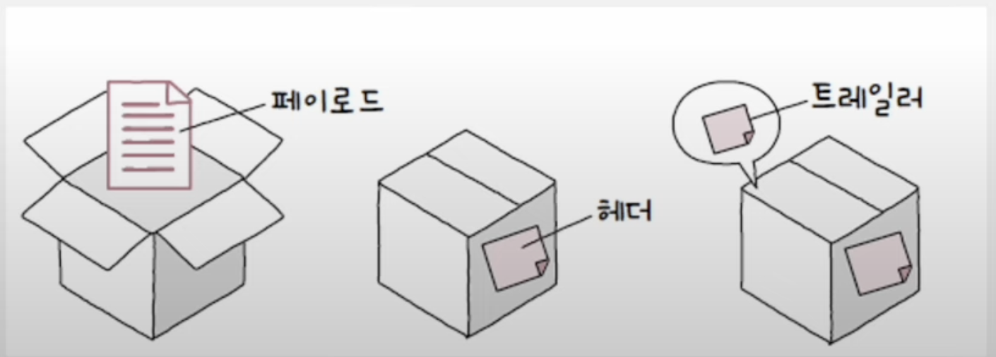 - 트레일러 : CRC 등 패킷의 데이터 무결성 검사를 위한 도구 등이 있음
