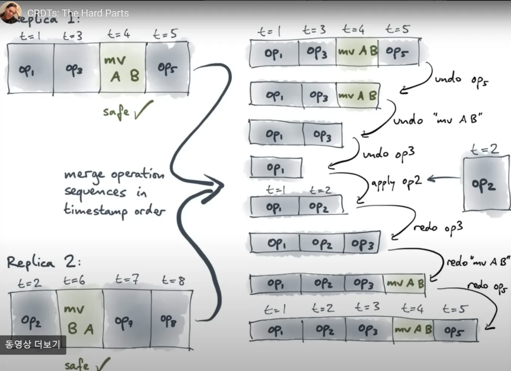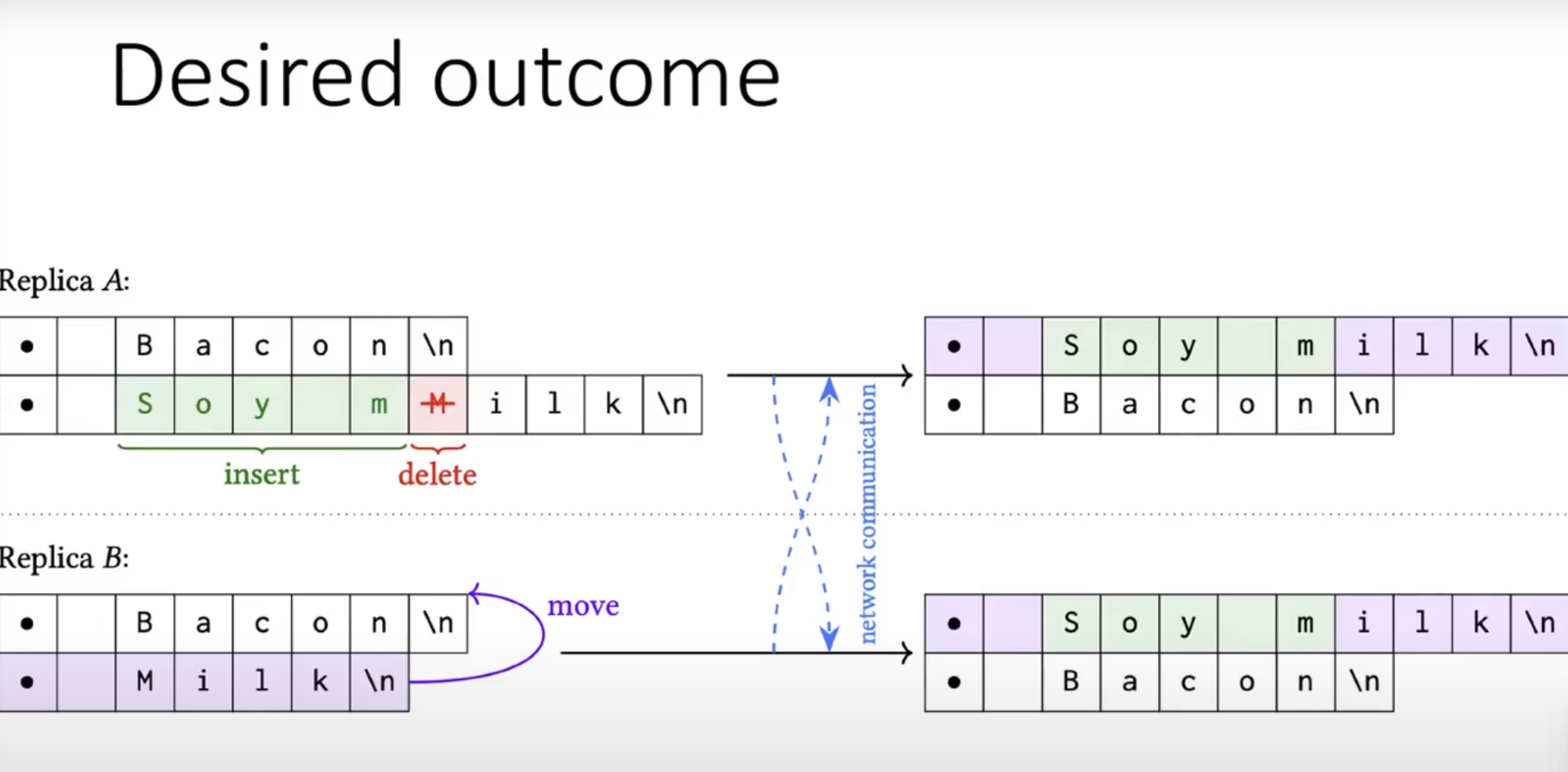 CRDT 원리를 담은 동영상위 영상을 기반으로 핵심 내용들만 정리한 내용입니다. 동시편집이란?동시 편집은 동시에 시작한 작업이 원하는 화면에서 같은 화면으로 종료시키고자하는 방식입니다.