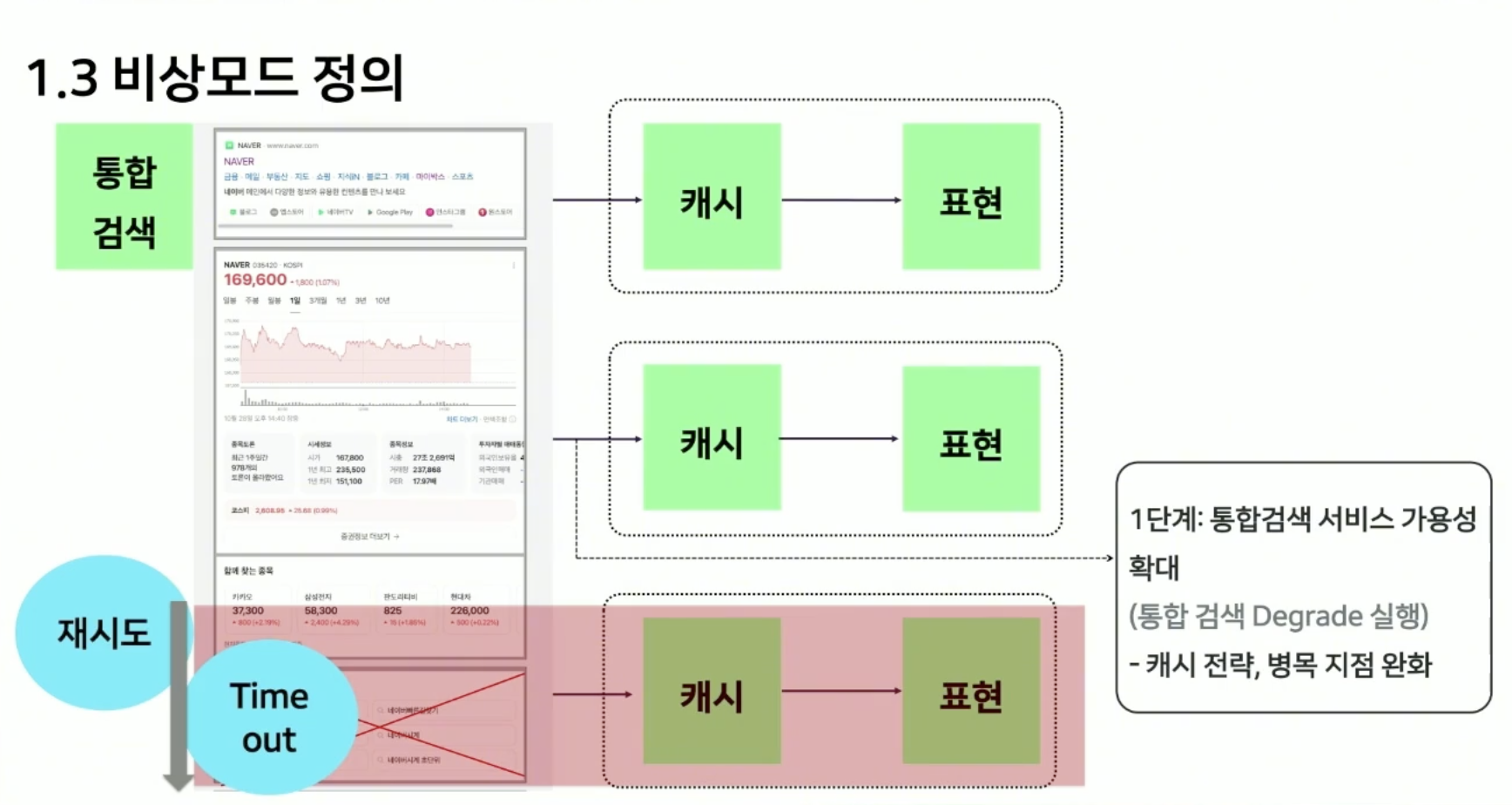 당연히 서버 증설을 하면 좋지만, 이런 예측 불가능한 상황(트래픽 폭증)에서 무제한의 장비 증설은 불가능하다. 그래서, 네이버는 이에 대한 비상 대응 시스템을 설계 및 적용했다.