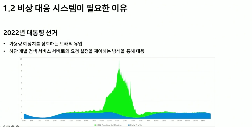 대통령 선거, 국가 재난 상황 등 전국민의 관심이 일정 시간동안 집중되는 경우가 있다. 이 때, 네이버 검색의 트래픽이 10배 가까이 오르고 가용성이 바닥나는 상황이 생긴다. 이는 API 응답 오류와 신뢰성 저하로 이어지게 된다.