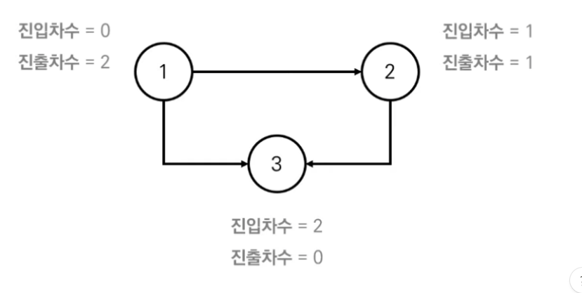 - 진입 차수 - 선수과목 수(나에게 들어오는 노드 간선의 수)