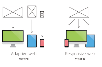위에서 서술한, 반응형웹이 모든 기기에 하나의 웹페이지를 크기별로 조절하는 것이라면, 적응형 웹은 대표적인 기기에 맞게 각각의 웹페이지를 만들고 접속한 기기에 맞는 웹페이지를 불러오는 방식이다. (사소한 기기 크기 차이는 비율 조절을 한다)