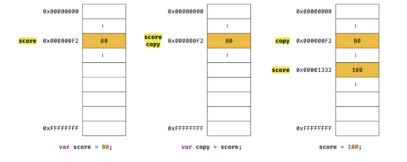 console.log(score,copy) // 80, 80