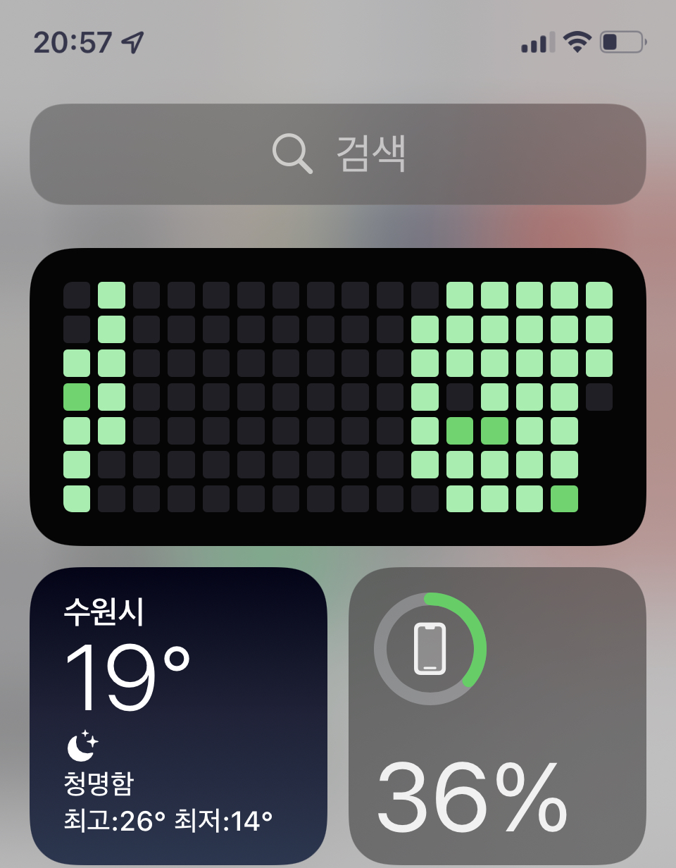 엡 > 홈화면편집 기능 또는 위젯편집을 누르면 편집모드로 넘어가며 아래 사진에 +를 눌러서 깃허브를 추가하자